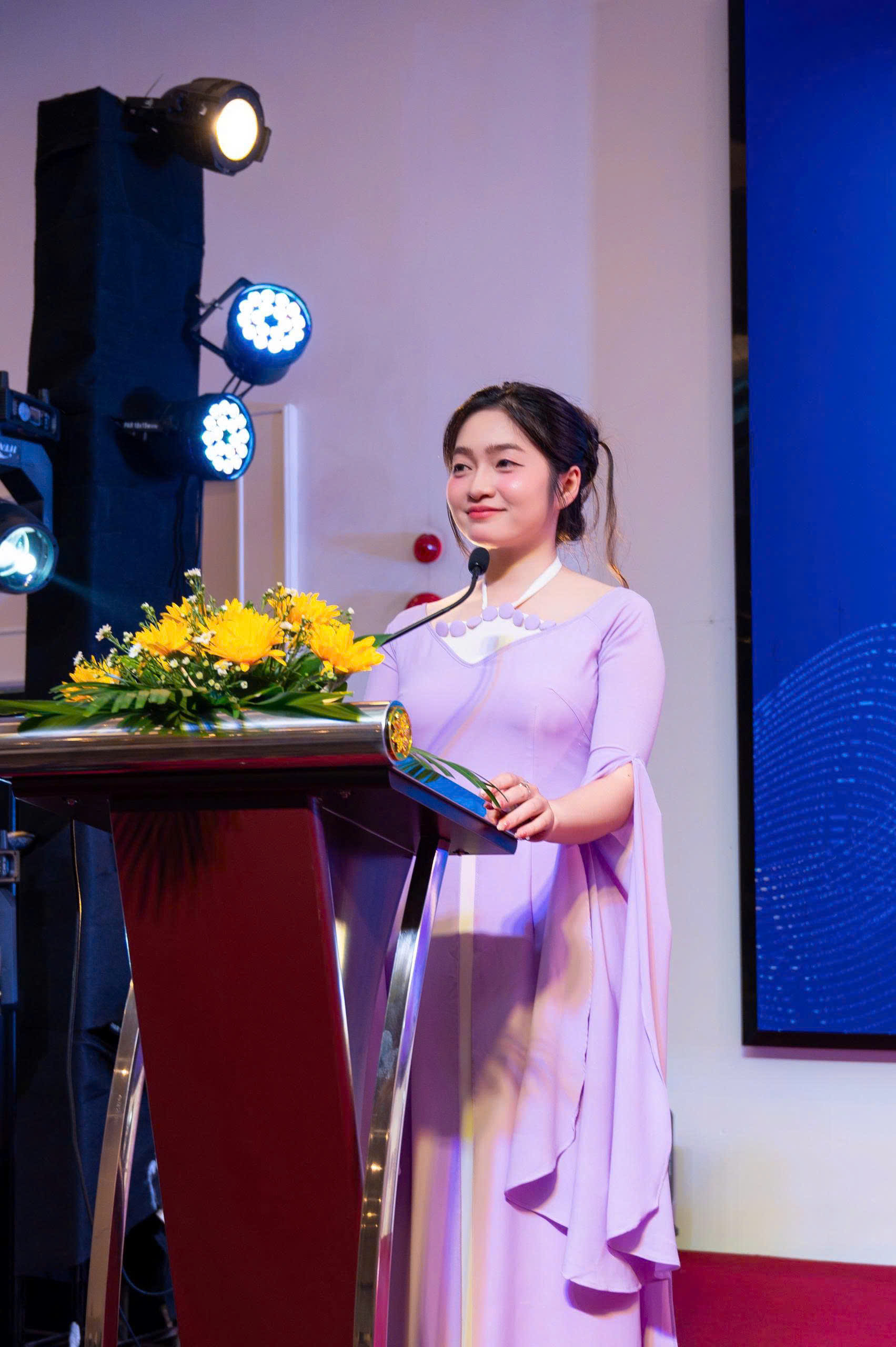 Theo quy định của chương trình, áo dài truyền thống được chọn làm trang phục chính, góp phần tôn vinh vẻ đẹp duyên dáng và thanh lịch của người phụ nữ Việt Nam. Trong số các đại biểu tham dự có Tân Hoa khôi Mẫu ảnh Việt Nam – Thiên Thơ, xuất hiện nổi bật trong tà áo dài tím nhẹ nhàng, cùng hòa mình vào không khí trang trọng của sự kiện và gửi lời chúc mừng đến cộng đồng nữ doanh nhân nhân ngày đặc biệt này.